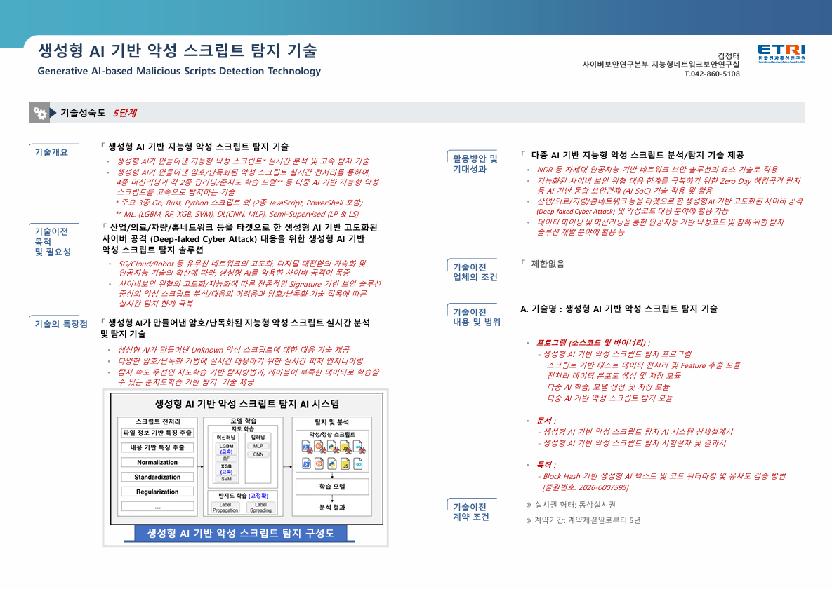 (ETRI) 생성형 AI 기반 악성 스크립트 탐지 기술