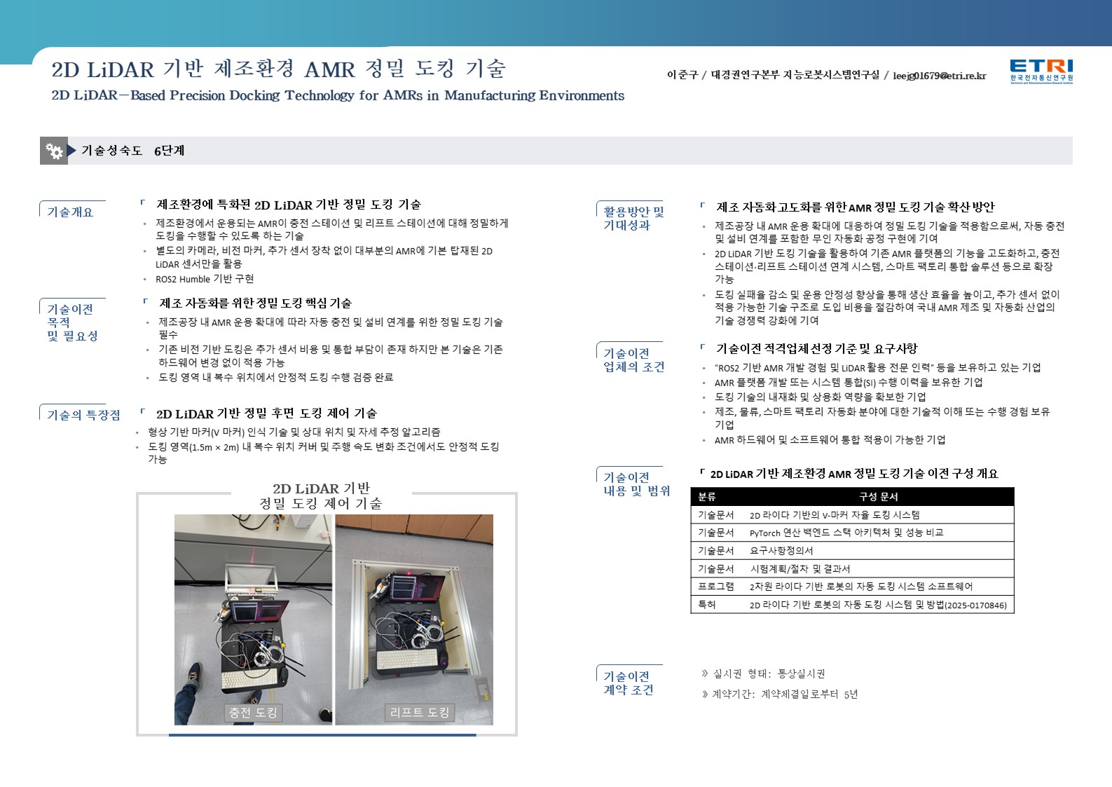 (ETRI) 2D LiDAR 기반 제조환경 AMR 정밀 도킹 기술