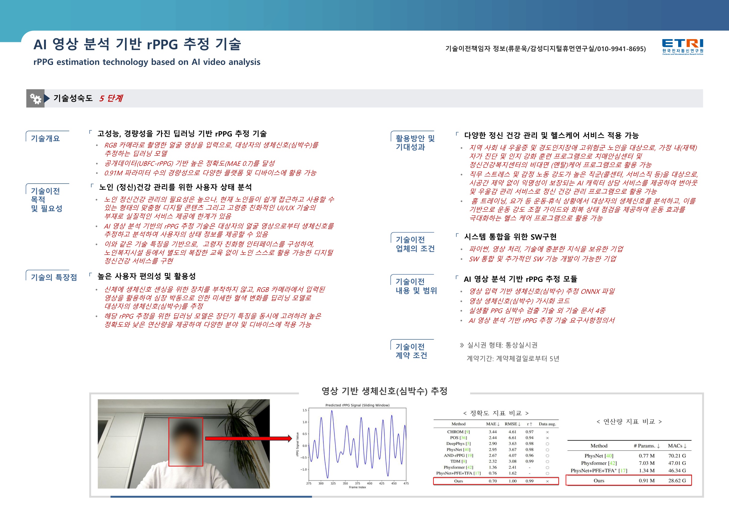 (ETRI) AI 영상 분석 기반rPPG 추정 기술